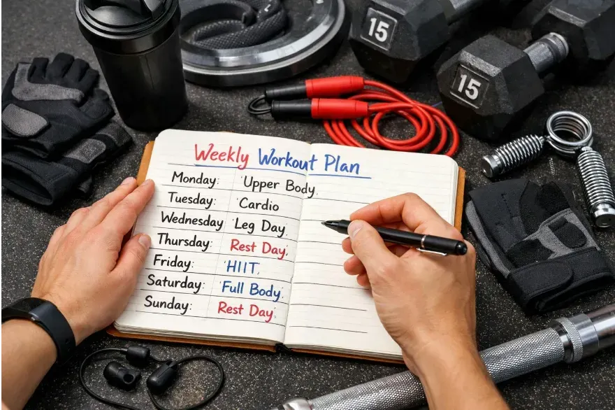Learn how to design a workout plan that actually works—covering training splits, frequency, recovery, periodization, and balancing cardio with strength.